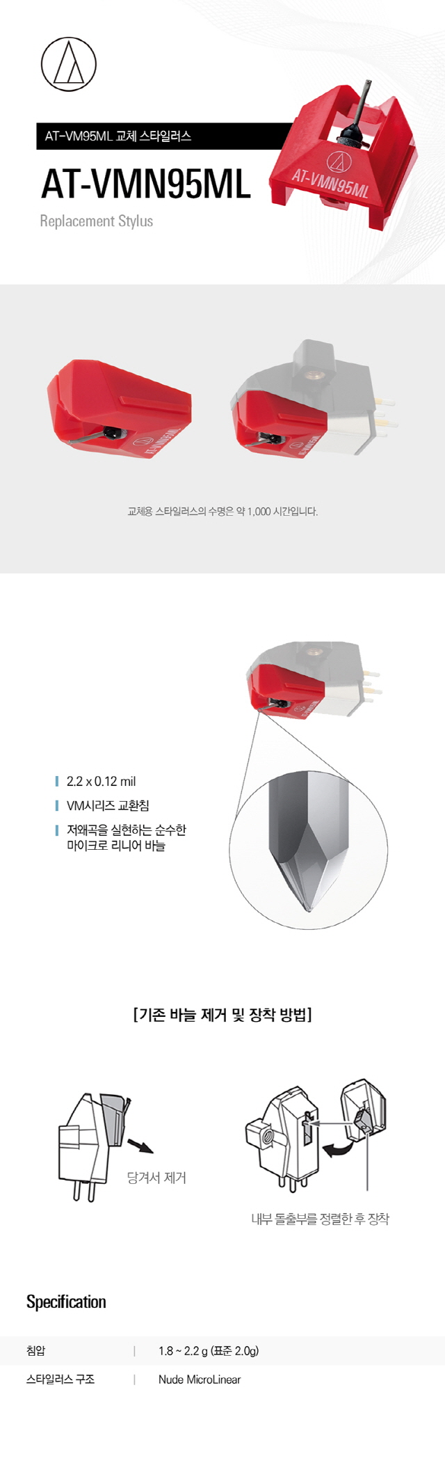 AT-VMN 95ML 카트리지 - 오디오테크니카 AT-LP120XUSB 턴테이블